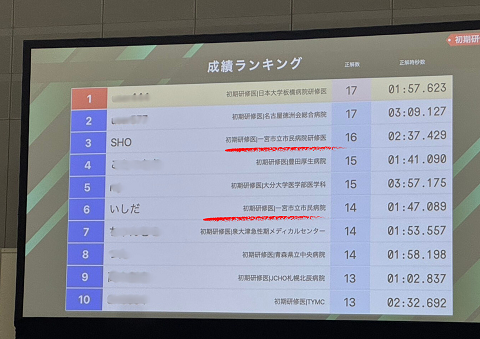 【研修医】「心電図クイズ 」で 2名がトップ10入りしました!