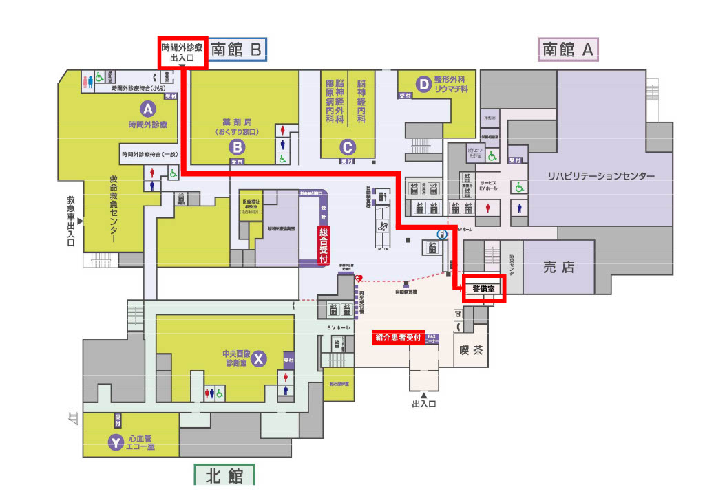 当院では新型コロナウイルス感染症の感染対策のため、来院者用出入口を正面玄関に限定し、時間外診療(救急外来)出入口を夜間・休診日を除き閉鎖しておりましたが、2025年11月1日(土)から終日開放します。